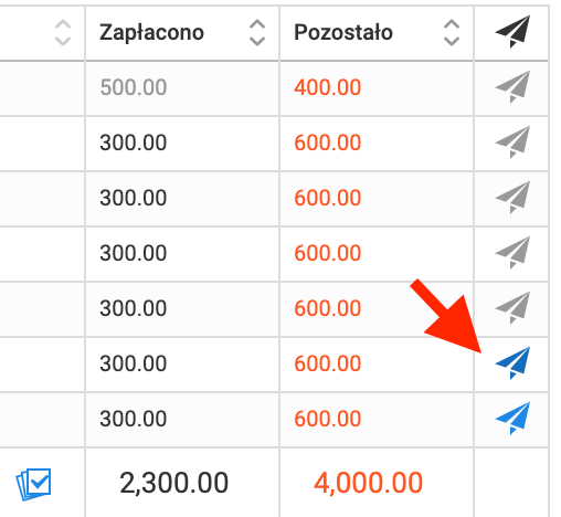 To start sending the contribution payment reminder manually, click on the blue paper plane in the last column of the table. The grey colour of the icon means that the parent's account has not been activated yet and therefore it is not possible to send the reminder. Clicking on the blue icon will open your email client, it can be Outlook, Gmail or Thunderbird, but remember that the email client must be configured. When you open the email client, a predefined and ready to send the email will be generated.