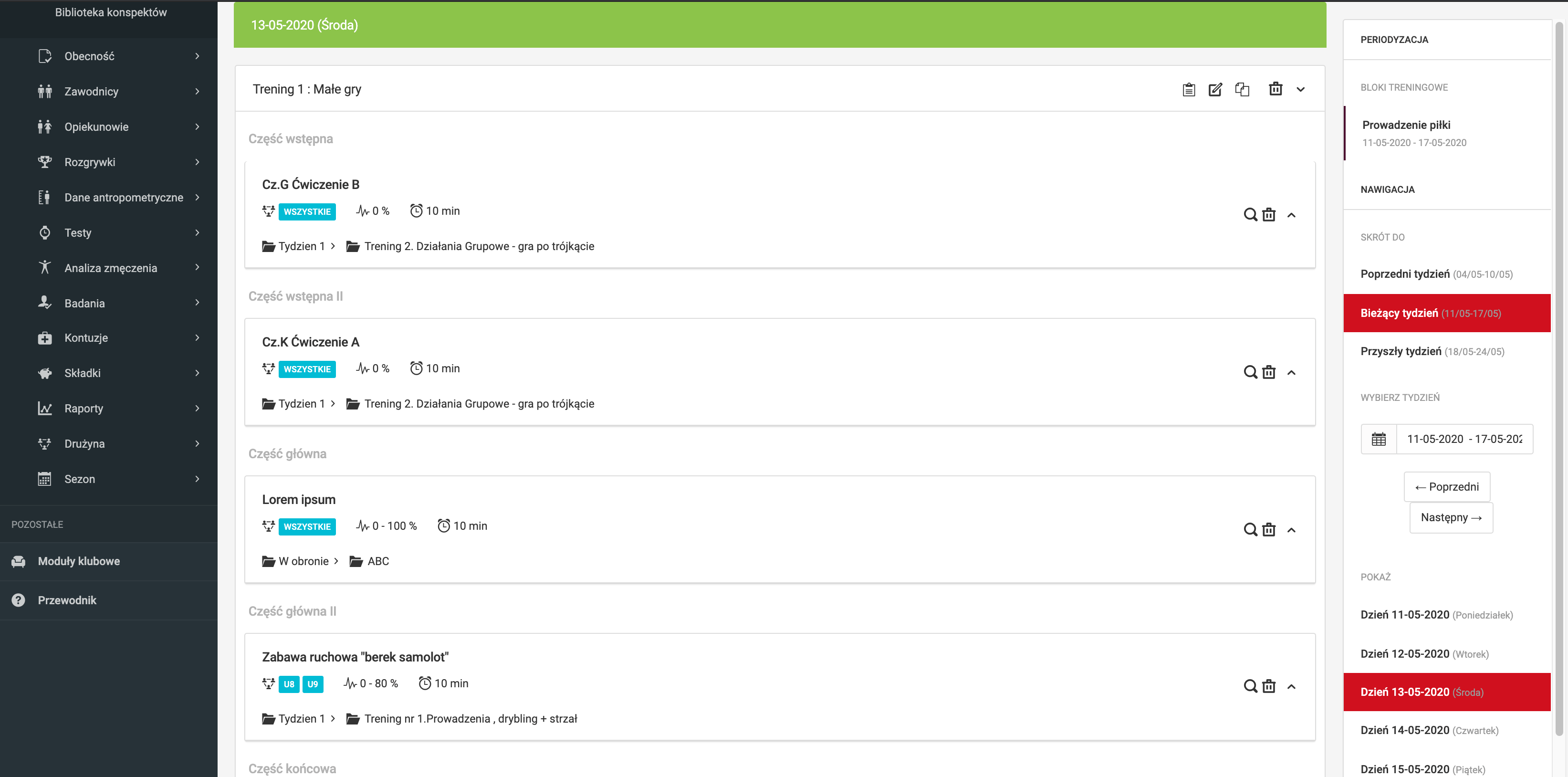 Ustalanie kolejności ćwiczeń odbywa się poprzez przeciągniecie ćwiczenia do odpowiedniej części treningu. Aby to zrobić złap myszką wybranie ćwiczenie i przeciągnij je na odpowiednią pozycję.